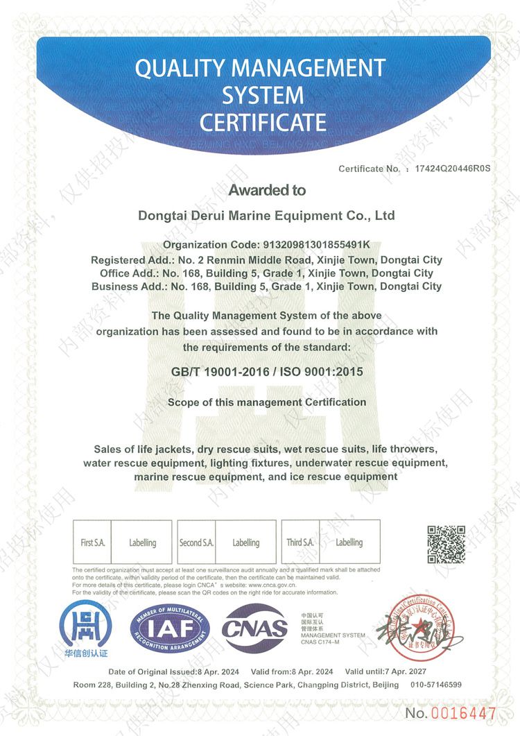 質(zhì)量管理體系認(rèn)證證書(英文版)